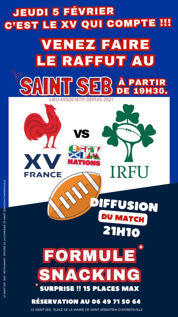 proposé par Le Saint Seb, à partir de 19h30, diffusion du match à 21h10, formule snacking