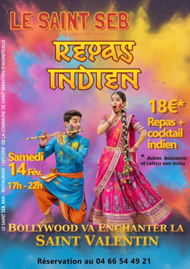 organisé par le Saint Seb, de 17h à 22h, repas & cocktail indien à 18€