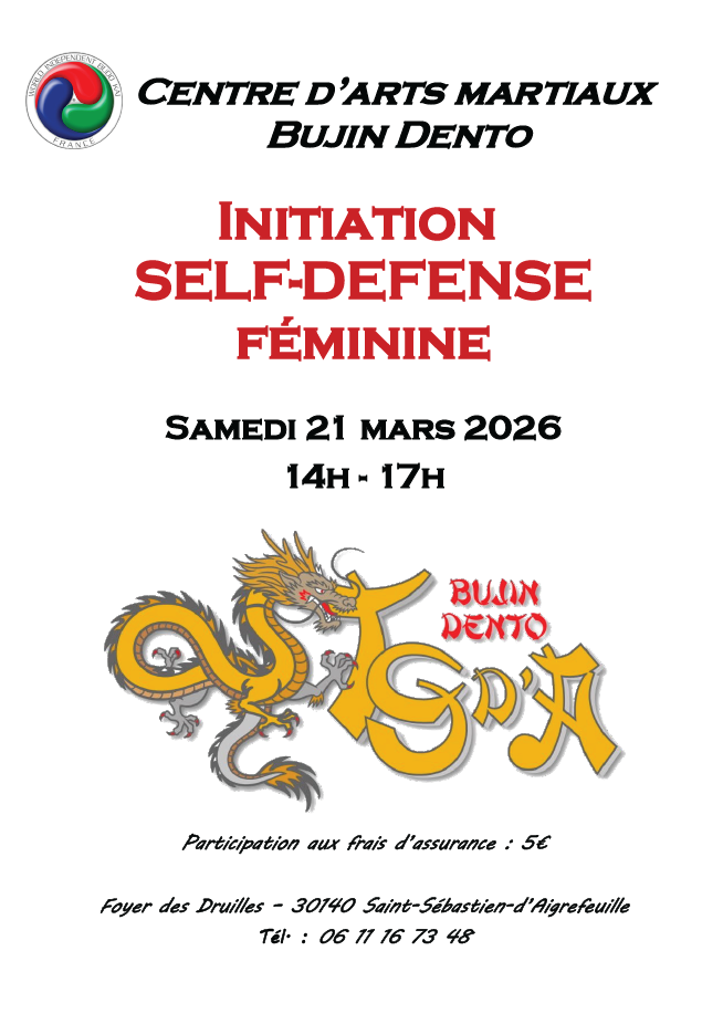 organisée par le Centre d’Arts martiaux Bujin Dento, Samedi 21 mars de 14h à 17h au Foyer communal.