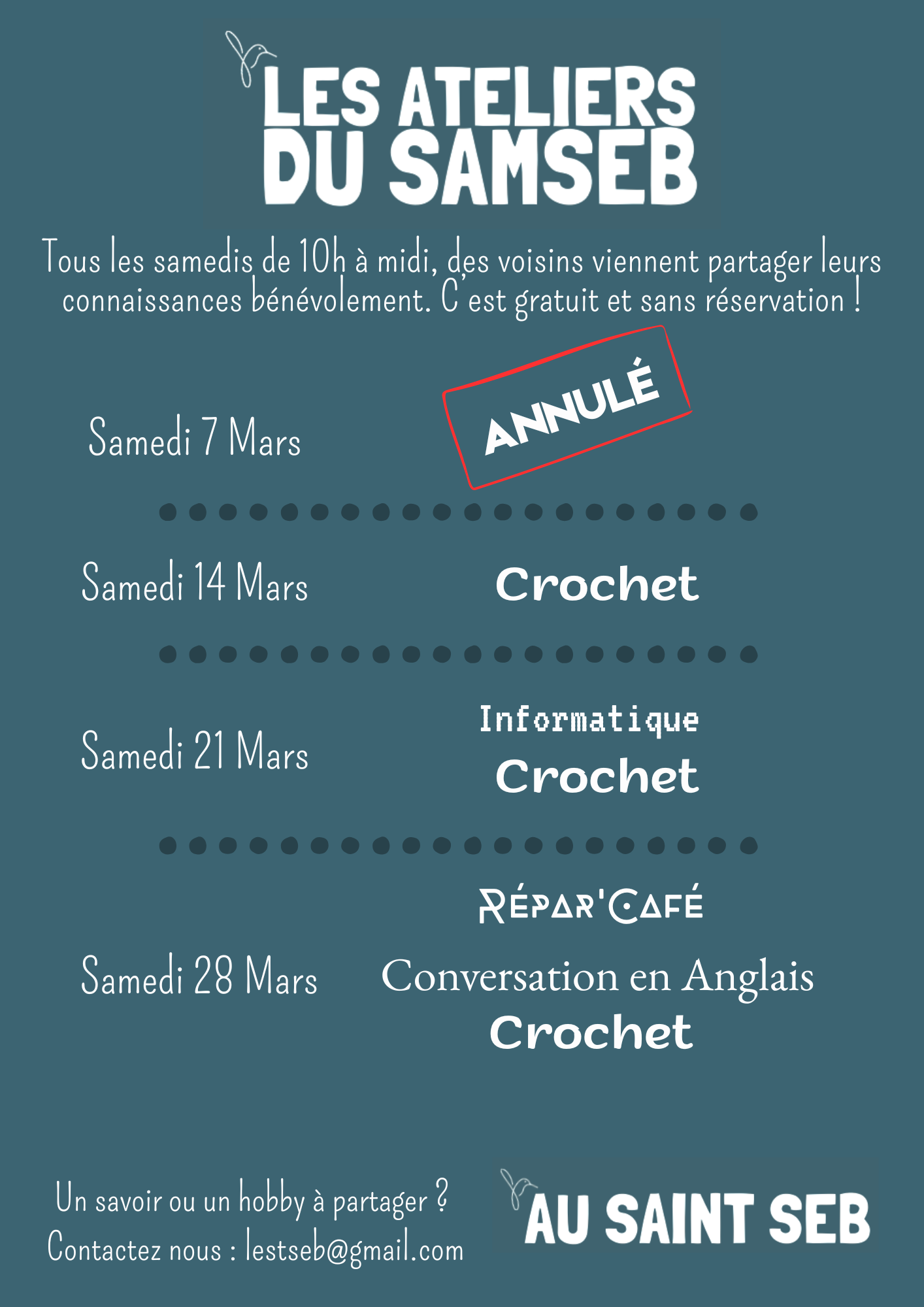 Infos du Saint Seb en mars
